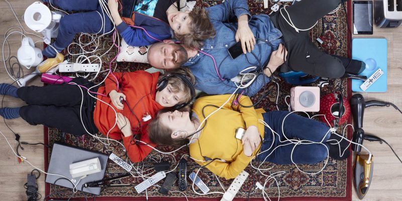 The picture accompanying this story shows Rupert, a tech collector, with his three children. The photographer focused this image on the huge number of cables in the UK. There are 138 million cables hoarded in the UK – enough to go around the Earth five times.